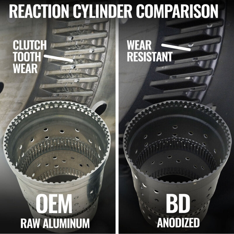 Engineered for enhanced reliability and extended service life, the BD 10R80 RoadMaster Transmission is the ideal upgrade for stock or mildly modified trucks. It addresses common 10R80 weaknesses with durable solutions -- most notably, the notorious CDF Drum leak is fixed by introducing a retaining feature to support the internal bushing from shifting and blocking fluid pathways. For sharp shifts and lasting performance, each transmission features an anodized reaction shell to eliminate embedded clutch tooth wear issues and a new OEM valve body -- modified to improve solenoid retention and increase line pressure by 30%, delivering noticeably higher clutch holding power. Included in every package are BD'(TM)s ProForce 10R80 Torque Converter and a high-capacity Deep Sump Pan. The added fluid volume from the deep sump design helps keep the new OEM clutches and steels cooler, promoting longer-lasting performance compared to stock setups.
