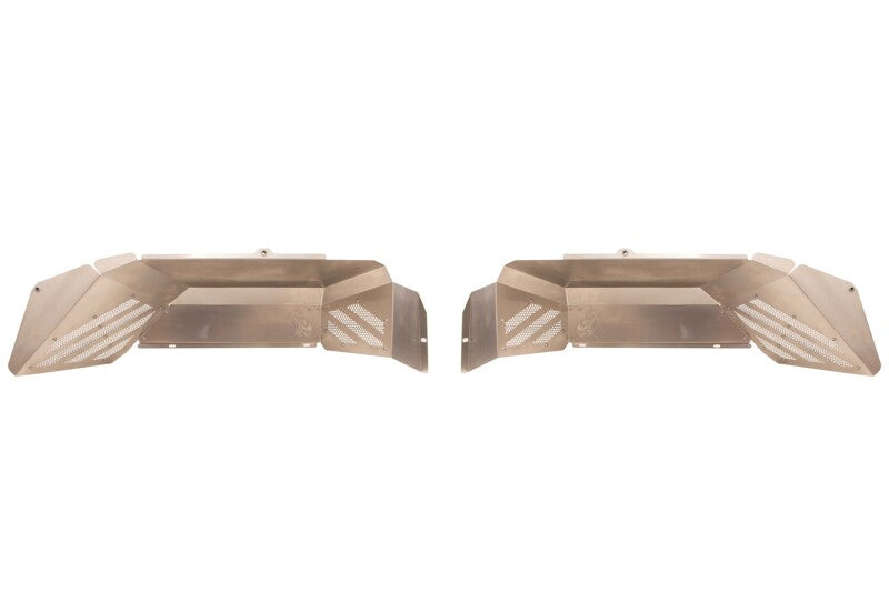 Fits 2020 to Current JT Gladiator. Made from RAW Unpainted Aluminum. Fishbone logo laser cut into inner fender. REAR SET ONLY. These are only the inner panels.