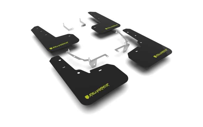 Rally Armor 13-17 Subaru Crosstrek XV Black UR Mud Flap w/Green Logo (Altered Font)