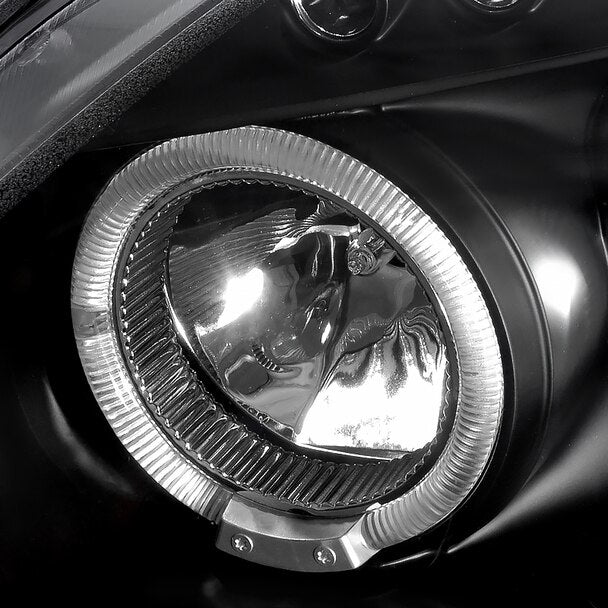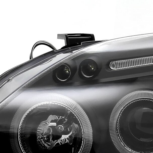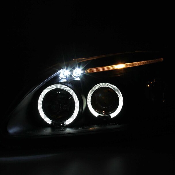 • Comes with 1 pair of black housing clear lens projector headlights with dual halo + LED lights