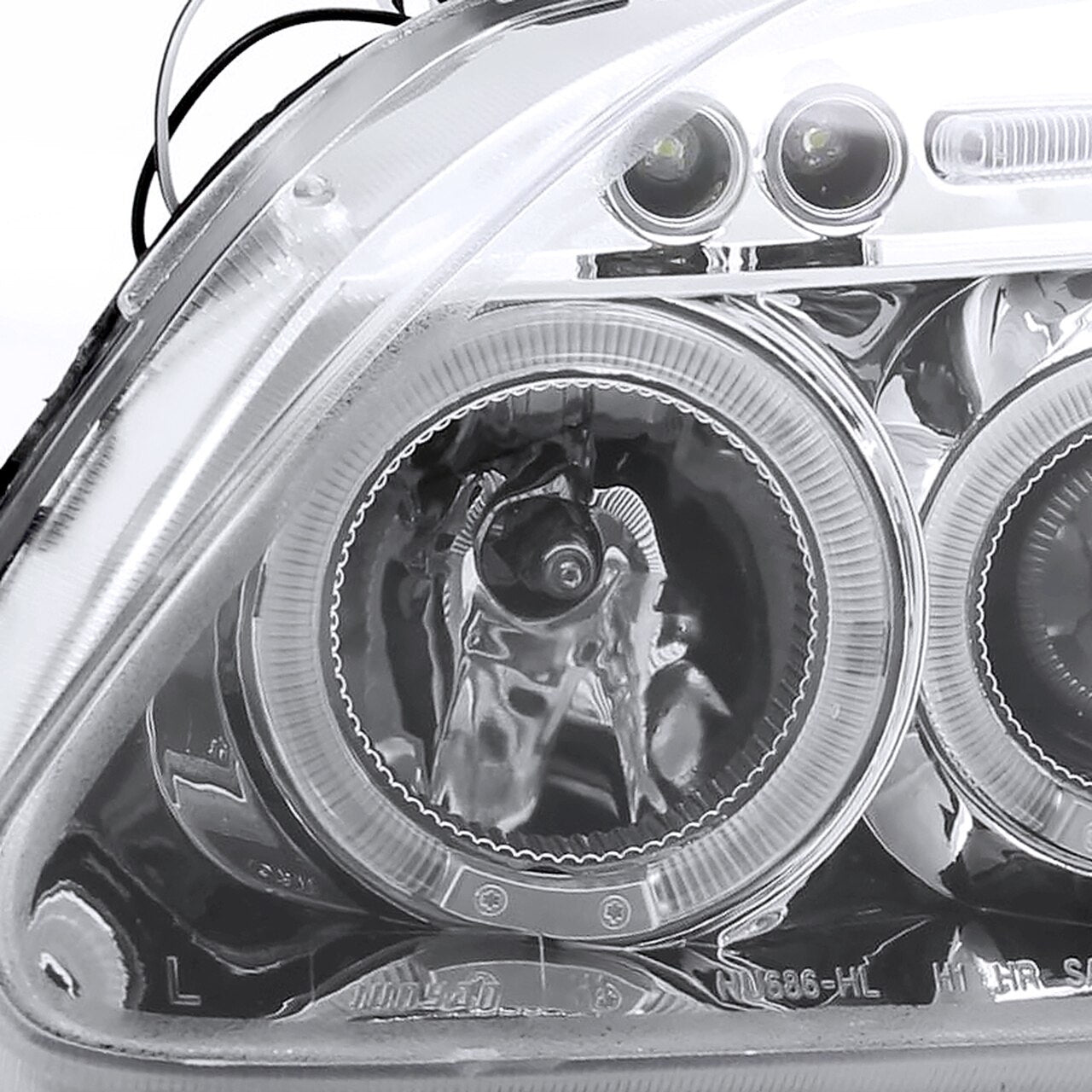 1999-2000 Honda Civic Spec-D Tuning  Dual Halo LED Projector Headlights w/Eyebrows (Chrome Housing/Clear Lens)