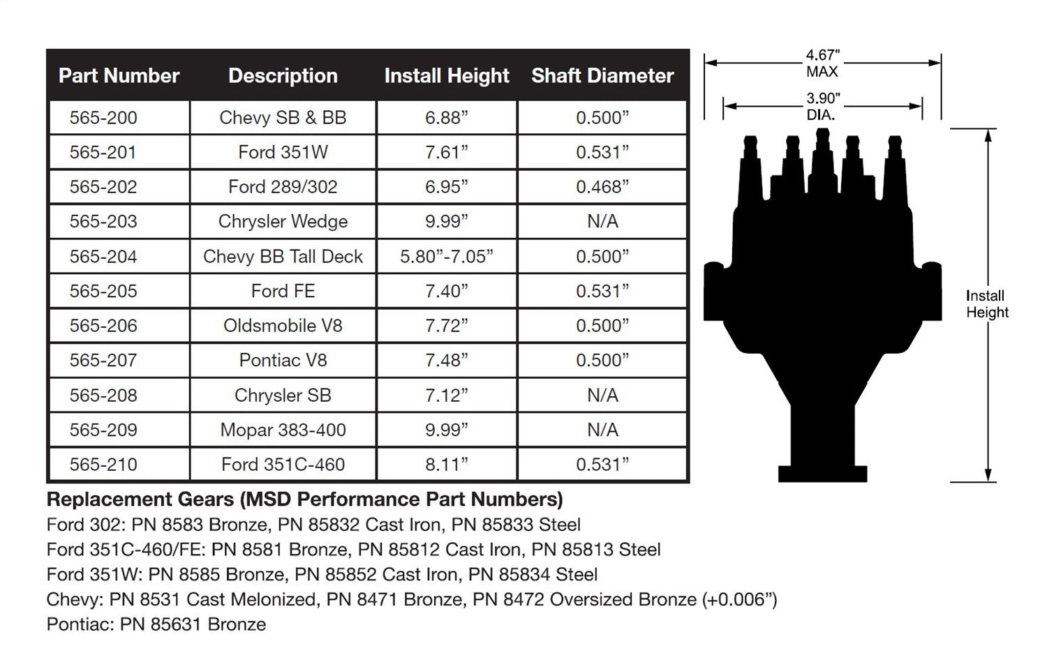 While these distributors are designed to be used primarily in sequentially injected installations, you can easily use them as a crank trigger for TBI system also. The precision machined shutter wheel design ensures accurate timing, even at very high engine speeds. The Gen 2 Dual Sync also included a QPQ coated shutter wheel for superior corrosion resistance, and the wheel has been pinned and welded to the shaft for increased reliability. These distributors can also be used with other EFI systems that support Hall Effect crank and cam sensor inputs. Do you need to a bronze gear for your billet cam? No problem, these distributors maintain MSD shaft diameters, making it easy to source a bronze gear!