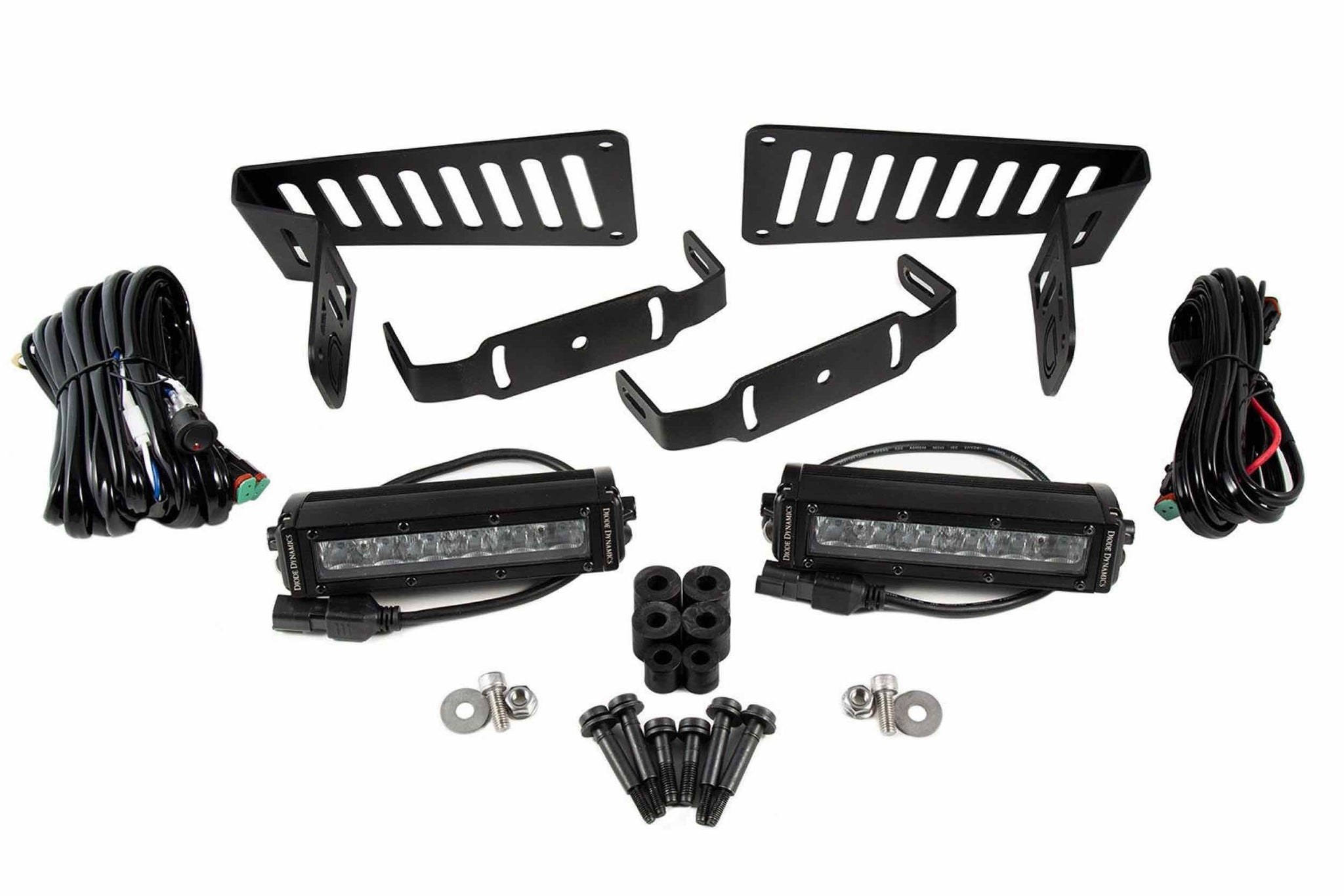 Features: CAD-designed for perfect fitment on 2018+ Jeep JL Wrangler. Features multiple mounting points for endless mounting options. Compatible with any pod, worklight, or small light bar. When a set of standard pods is mounted on the outer slot, they allow you to still fold down the windshield. Includes OEM-style automotive grade hardware designed specifically for this kit. Utilizes existing mounting points for easy installation - no cutting or drilling required. Highly durable powdercoated steel construction. Perfect fitment: The Cowl Mount LED Light Bar Kit for the 2018-2019 Jeep Wrangler from Diode Dynamics allows you to easily mount just about any auxiliary lighting you can think of. These application-specific brackets were CAD-designed to install using factory mounting points. No cutting or drilling required! They also feature a low profile design, which eliminates excess whistling or major wind noise. Endless mounting options: These brackets were designed with a variety of different mounting points for endless mounting options. You can mount multiple pods, a larger worklight, or even a small light bar to achieve the look you're after! There are even slots on the side of the bracket to mount ditch lights. When standard pods are installed on the outer slot, you can fold the windshield down without removing your auxiliary lighting. When installed along with our JL Wrangler Hood Light Bar Kit, you can easily mount a 50" Stage Series light bar across the hood as well. Not your average hardware: The hardware included with this kit is OEM-style, automotive grade hardware. This hardware isn't from the hardware store - it was custom designed for this kit with integrated washers and the same OEM finish as the factory hardware. The Delrin spacers are long-lasting and won't wear over time. Control through aux switch bank: Included with the full light bar kit is our new OEM Auxiliary Switch Dual-Output Wiring Harness. This harness allows you to control your auxiliary lighting using the factory-installed aux switch bank. For those who don't have the aux switch bank, our Light Duty Dual-Output Wiring Harness is also included to mount a switch and connect directly to the battery. Designed for performance: Using optical simulation model'g, Diode Dynamics Stage Series LED light bars have been designed for maximum functionality, with compact size, custom-engineered TIR optics, and a useful beam pattern, all in a highly durable package. Our light bars shine light in a highly-functional and useful beam pattern, much more focused than older LEDs on the market. Functional Patterns: All Stage Series beam pattern options were designed with optical simulation model'g, to shape the output in a highly-functional beam pattern. No matter what your auxiliary lighting needs are, there is a Stage Series optic for you! The Driving pattern was designed to supplement your high beams. Rather than a simple "spot" pattern, the Stage Series Driving pattern has a rectangular 20Wx8H degree pattern that is far more useful for directing light downrange at high speeds.The Flood pattern was designed to provide uniform, even illumination and a full 80Wx50H degree spread of light. Unlike generic "flood" light optics that are simply a heavily diffused spot, our flood optic is a true optically designed spread, resulting in the biggest spread in the industry! It is perfect for lighting up anything at low speeds, a backup or reverse light, or to light up a worksite.