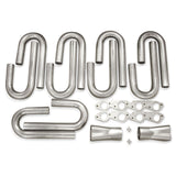 All tubes are CNC mandrel bent for optimal flow for the J-bends in this header builder kit. Made from 304 stainless steel for maximum corrosion resistance. The diameter of tubes is 2-1/2" with .049 wall thickness. This kit includes (2) 3/8" thick CNC laser cut flanges, of your choice. Also comes with (12) J-bends, (2) formed collectors and (2) filler diamonds to connect the tubes together. We recommend the use of 308L SS welding rod. These kits are proudly made in the USA.