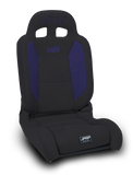 Add comfort and containment to your Jeep, Truck, or Buggy with the EnduroDaily Reclining Suspension Seat from the Enduro Elite Series, the newest line of Reclining Suspension Seats from PRP. Featuring modern styling and a dual slot headrest for harnesses, the EnduroDaily is designed to replace your stock seats in a Jeep Wrangler, Jeep XJ, Ford Ranger, Trucks, or Buggy for increased enjoyment, comfort, and containment off-road. The EnduroDaily Reclining Suspension Seat features Low Bolsters on the Back and Bottom offering a little more containment than most stock seats, but are still quick and easy to get in and out of. This seat is great if you use your vehicle as a daily driver most of the time, with occasional trips off-road. A removable, dual-layered seat cushion means the EnduroDaily offers better leg support and extended comfort. The vinyl-coated nylon suspension liner and dual-density foam decrease the impact on the body and reduce body fatigue after a long day on the road or while exploring off-road. The EnduroDaily reclines completely and inclines enough to allow access to the rear seats. The bottom tabs easily bolt to PRP’s series of mounts built for Jeeps, Broncos, Ford Rangers, and more. The seat features a Vinyl Center, Back, Band. Available in several different color combinations.