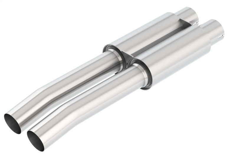 Does NOT fit competitors or Original Equipment systems. This resonator with 2.75' diameter inlet and outlet can be used to replace the Borla(r) Mid-Pipes in X-Pipe with Mid-Pipe assemblies 60607 or 60610 for additional sound control. The resonator is used to attain the "Touring" sound level when used with "S-Type" Axle-Back systems. It can also be used to quiet the ATAK(r) Axle-Back systems. Built from premium T-304 stainless steel, superior to T-400 series (such as 409), to give you the absolute best in performance and durability. Ultra-smooth mandrel bends ensure maximum flow & power, and precision computer numerical control (CNC) manufacturing ensures an accurate fit. Best of all, Borla(r) stands behind every direct fit resonator with a Million-Mile Warranty. Just what you'd expect from the world's most experienced (and most winning) exhaust brand.