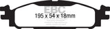 EBC Yellowstuff is an aramid fibre based brake compound with high brake effect form cold and is possibly one of the first ever compounds that can be used for STREET AND TRACK DRIVING. These pads do not require warm up but do get even stronger under the heat of hard driving. These are not a low dust pad and if your desire is for a low dust premium street use pad, you should consider EBC Redstuff.When considering full race use, Yellowstuff has been a strong favourite, having been used for two years in the Swedish Camaro Cup and at numerous other race events where a stock caliper system is fitted.It is also the choice of 90-percent of the Mazda MX5 Miata competitors in the UK race series and has an unblemished record as rotor friendly track pad for vehicles up to 2000 lbs weight or 200 BHP.In the USA the SCCA and NASA drivershave been testing Yellowstuff with feedback and good reports POURING in from a 543 test driver major market proving event with these groups. Read that figure again 543 test drivers.There is no guesswork here.