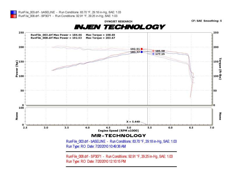 Is your engine choking for air and in need of some additional horsepower? If so, Injen has exciting news for you! The SP series of cold air intakes from Injen Technology will allow your engine to breathe deeper and enhance the performance that you've been craving. The SP series of cold air intakes is Injen's flagship system in their lines of traditional aluminum cold air intake systems. Injen Technology is the world's first tuned air intake system and holds four (4) patents on the tuning process of an intake system ? something no other manufacturer can claim. The SP series of cold air intakes feature many of Injen Technology's patented tuning process, including MegaRam (MR) Technology (Patents 7,359,795 and 7,669,571), Air Fusion (Patents 7,757,548 and 7,721,699), and many other innovations that keep Injen Technology at the forefront in the performance aftermarket. , , The soul of this intake is found within 6061-T6 aluminum air intake tube that provides a smooth uninterrupted path for highly efficient airflow. Our engineers have painstakingly designed the intake to provide the highest levels of safe power, along with clean aesthetics that will impress every time you open your hood. In addition to the impressive power increase, the Injen team has ensured that a safe Air fuel (A/F) ratio has been maintained throughout the power band. , , Additionally, this SP intake includes a fully serviceable Injen SuperNano-Web dry air filter, which provides increased filter surface area allowing for greater airflow and unbeatable filtration. If that's not enough, the Injen SP performance intake provides power you can hear and feel! This intake provides an aggressive and throaty tone that is unmatched in the aftermarket. Want to add that personalized touch to your intake? You're in luck, as Injen also offers this intake system in multiple finishes. To top it all off, this SP CAI kit includes the unbeatable Injen Technology limited Lifetime Warranty!