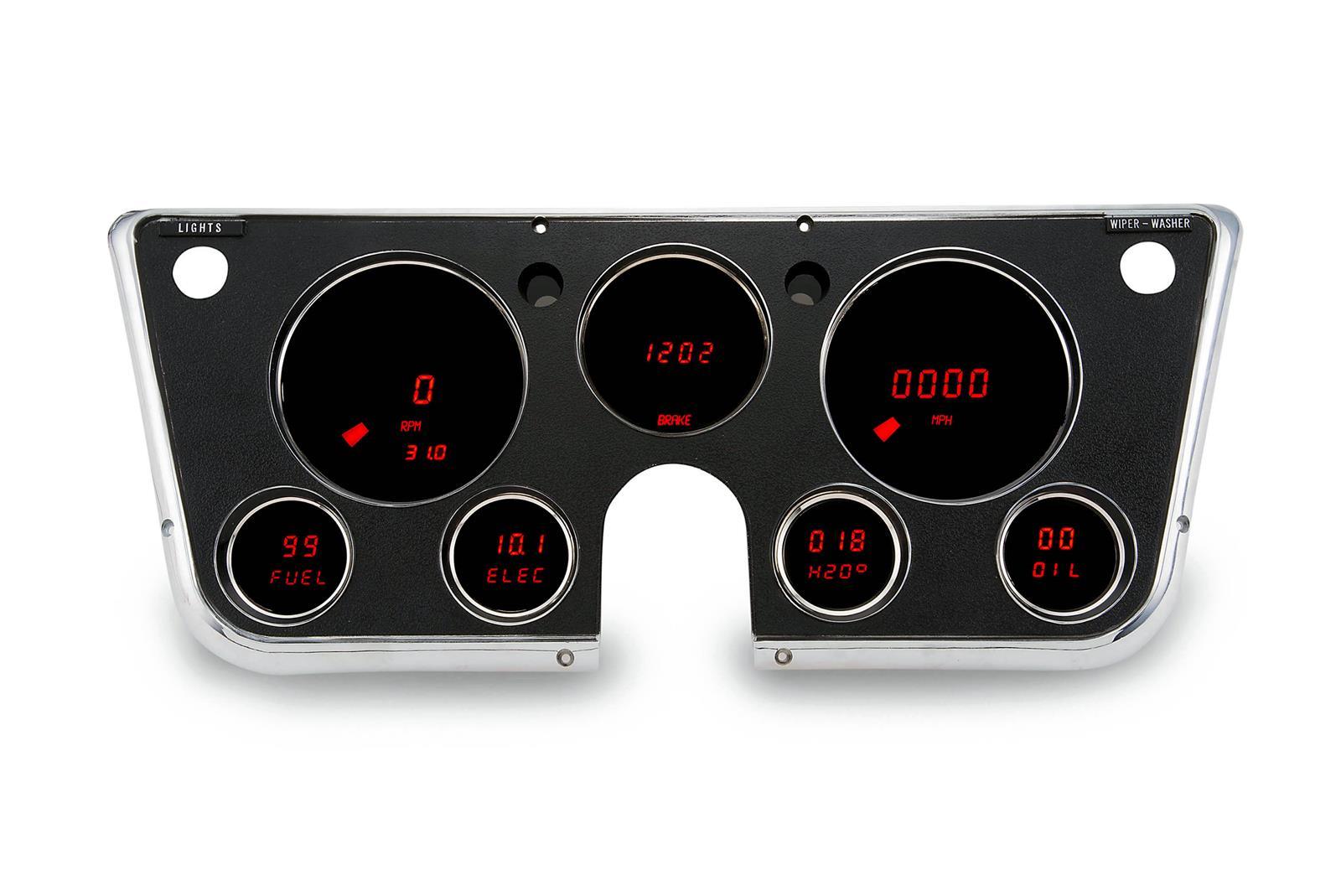 Digital Gauge Cluster - LED - Digital Gauges - Speedometer / Tachometer / Voltmeter / Oil Pressure / Water Temperature / Fuel Level / Clock - Red LED - Plastic - Black - GM Fullsize Truck 1967-72 - Kit