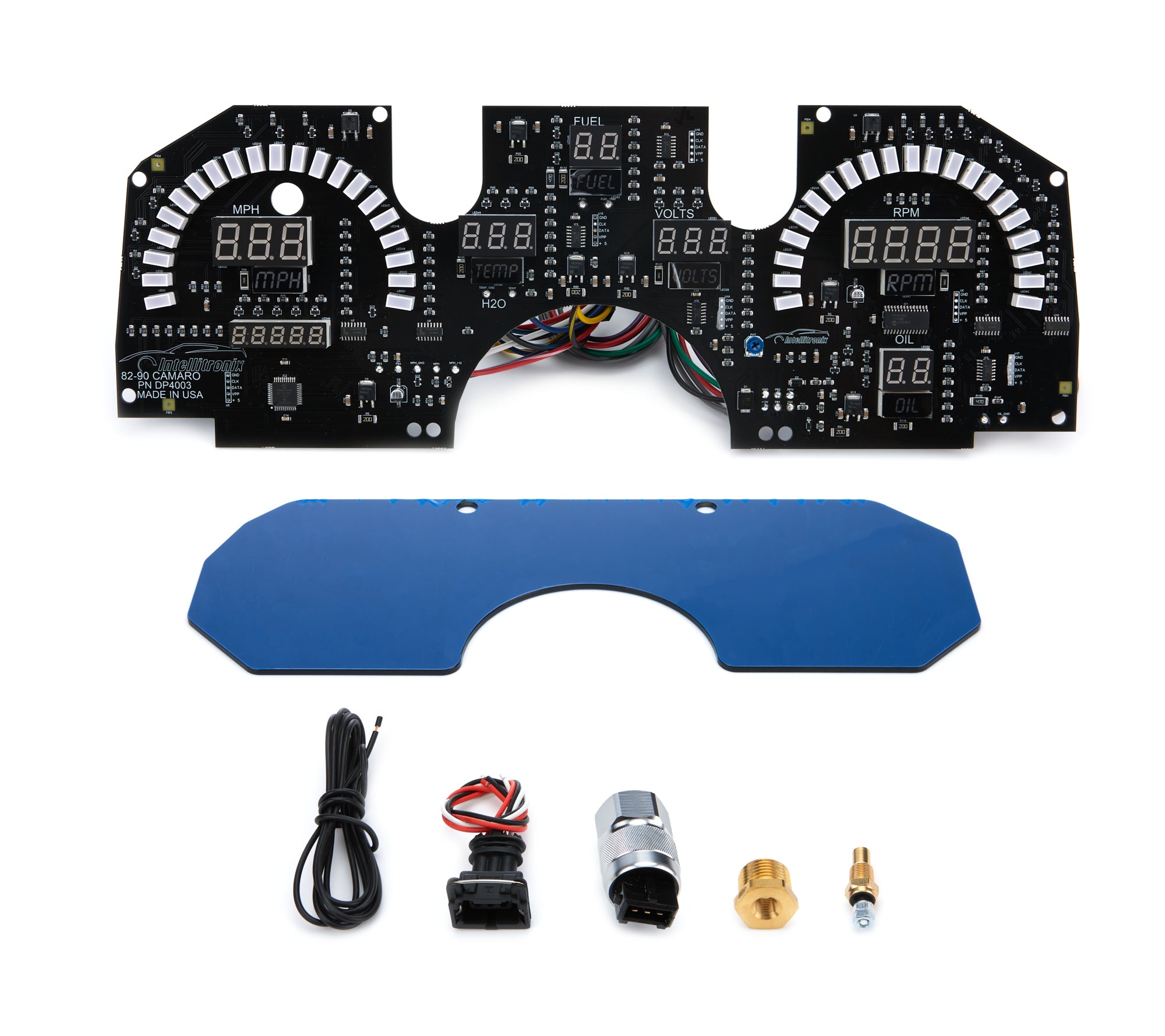 Digital Gauge Cluster - LED - Digital Gauges - Speedometer / Tachometer / Voltmeter / Oil Pressure / Water Temperature / Fuel Level - Red LED - Plastic - Black - GM F-Body 1982-90 - Kit