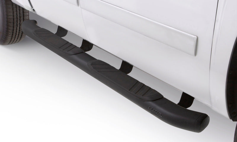 LUND® 5 In. Oval Composite Nerf Bars are durable, stylish and constructed with cutting-edge polymers mated to a recessed, extruded aluminum frame. The result is super-strong bars that are virtually corrosion-free. A wide step pad with UV-resistant, rubber grips is larger than traditional bar steps to provide solid traction and stability when getting in and out of the vehicle. The tapered bar ends give these steps a sweeping style that looks great on full-size trucks and SUVs.