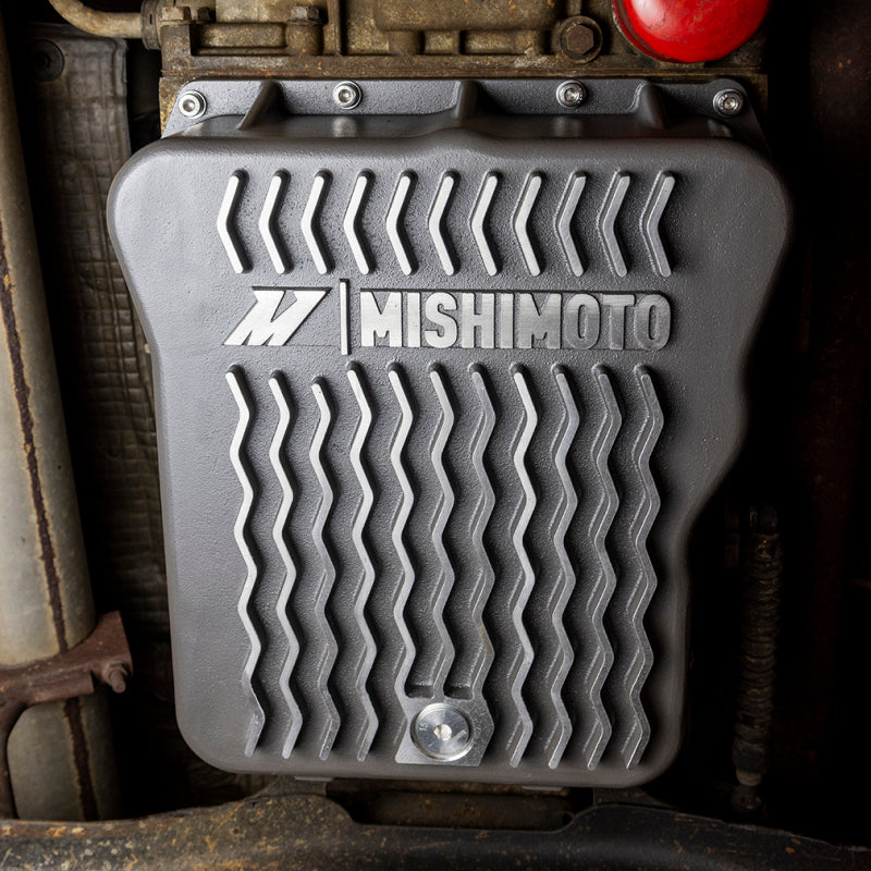 This Mishimoto Aluminum Transmission Pan is a direct-fit, high-performance upgrade for your 2001-2019 Chevy/GMC 6.6L Duramax. Cast from high-quality aluminum and powder coated Gunmetal Gray, our transmission pan is a robust and long-lasting upgrade for your vehicle's transmission. With a sleek design and bottom ribs, this pan not only adds to the overall aesthetic of your truck but also provides improved cooling performance.----This transmission pan features internal baffles that reduce sloshing and enhance heat dissipation, resulting in smoother transmission performance. All the headaches that come with a flat gasket and messy sealants are eliminated with our precision-machined dovetail-style groove and O-ring seal. This groove positively retains the O-ring, so you never have to worry about it falling out of place during installation. Additionally, the Mishimoto 2001-2019 Chevy/GMC 6.6L Duramax Aluminum Transmission Pan adds an extra 6.1 quarts of ATF to help maintain optimal transmission operation.----Fed up with the frustration of trying to hold up a transmission pan with one hand while threading the fasteners in with the other? Mishimoto has you covered with pre-installed bolt retainers that hold the fasteners in the pan, allowing you to easily thread the bolts without dropping them on the ground, your head, or worse, that pan of nasty transmission fluid you just drained. Additionally, our pan comes equipped with a magnetic drain plug for easy draining and a 1/8-inch NPT port and plug for temperature sensors to make servicing your transmission and monitoring temperatures a breeze.----This direct-fit upgrade offers affordable durability and helps maintain smooth transmission operation, ensuring a long life for your transmission. Like all Mishimoto products, this transmission pan is backed by the Mishimoto Lifetime Warranty.