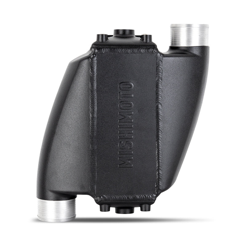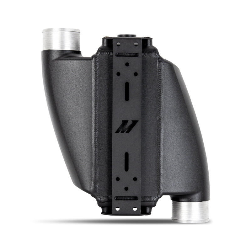 Keeping air intake temperatures low is the key to decreasing the impact of heat soak, reducing detonation, and producing consistent power output. As a result, Intercooler systems have evolved substantially over the last decade, bringing liquid-to-air intercoolers into popularity. To help bring the compact efficiency of air-to-water intercooling to your project, Mishimoto has developed a full lineup of high-performance air-to-water intercoolers. Our air-to-water intercoolers are available in single or dual-pass coolant flow configurations, each with multiple bar-and-plate core sizes and your choice of same-side or opposite-site outlets. These intercoolers support builds producing up to 1500 horsepower. When it comes to our intercoolers construction, robust is an understatement. Each intercooler features 5mm-thick cast-aluminum end tanks that are custom engineered for superb airflow, reducing overall pressure drop through the cooler. These tanks are professionally TIG-welded to our core, resulting in a pressure tolerance of up to 100 psi of boost. In addition, our intercooler design features unique CNC-machined ribbed inlet and outlet coupler connections, ensuring maximum grip between couplers and intercooler piping. Mounting and plumbing your air-to-water system can seem like a daunting task, but Mishimoto has made both tasks easy by incorporating -16ORB coolant ports into the core and providing a sturdy 1/8" thick steel universal mounting bracket. Adapting to your specific coolant line choice is easy with the Mishimoto -16ORB Aluminum Fitting selection . Mishimoto air-to-water intercoolers are finished with a sleek, durable, micro wrinkle black powder coat. As with all our products, these Mishimoto intercoolers include our signature Mishimoto Lifetime Warranty.