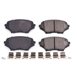The PowerStop Z17 Evolution Plus ceramic brake pads feature a ceramic formula designed to maximize stopping power while reducing brake dust & eliminating noise. Using OE positive mold technology along with a thermal scorched pad surface, Z17 pads maintain consistent wear and performance while ensuring a fast break-in. Stainless steel hardware is included with the Z17 brake pads making it easier to complete your brake job. The PowerStop Z17 Evolution Plus ceramic brake pads are an affordable stock replacement for all vehicles.