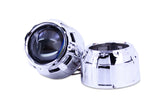 Mini Gatling Gun: The Mini Gatling Gun is a smaller version of the popular Gatling Gun design, made for use exclusively with the Morimoto Mini H1 bi-xenon projectors. Since it won't fit anything else, they're automatically included with those projectors by default. In Comparison: Don't make the mistake of thinking all shrouds are created equal. Even though less expensive alternatives may be available elsewhere: Morimoto shrouds are made from the highest quality plastic and have by far the most durable metalized chrome finishes. The cheap-o's out there are flimsy enough to deform from the heat just a 35W HID bulb, and their chrome finish easily flakes off. Mounting: could not be any easier with the Mini Gatling Gun shrouds. Four internal posts line up to the bolt pattern on the mid-section of any generation Morimoto Mini H1 projector, so they'll bolt right up! LED Halos: Are a unique and effective way to further customize the look of your projector retrofit. The Profile Pivot (switchback) and Profile Prism (RGB) systems are easy to mount on the front of your shrouds, are reliable, and of course awesome looking. Trimming: Please note that trimming shrouds is a common task when retrofitting. Whether required to clear part of the projector, or fit within the geometry of your headlight housing; it's normal. Luckily, they're made of plastic - making that easily possible. We recommend a Dremel hand tool with EZ Lock cutting wheels to make the job easy.