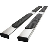 Westin R5 Nerf Step Bars have 5 inch wide step area with a unique molded polymer step pad design. R5 Nerf Step Bars are rocker panel mounted and include injection molded bracket covers for a full and stylized appearance. R5 LED Light Kit upgrade is available, sold separately.