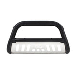 The Westin(TM) Ultimate Bull Bar is a front-end light bar made of 3in. diameter tubing for larger model trucks and SUVs and made of 2.5in. diameter tube for smaller trucks and SUVs. Product application is vehicle specific and comes complete with mounting kit. The Westin(TM)Ultimate Bull Bar features black molded caps on the crossbar welds for a finished and clean look. It features a stainless steel skid plate with a laser-cut Westin signature logo on it. Add a set of Westin(TM) Driving Lights for a complete customized look.